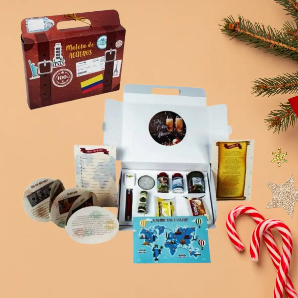 Las Maletas de Agüeros para fin de año son una tradición que sigue pasando de generación en generación. Con esta maleta, podrás mantener viva esa costumbre y asegurar que el nuevo año venga cargado de viajes, fortuna y amor. Cada maleta está preparada para que no falte ningún detalle, lista para usar en tu fiesta de fin de año.