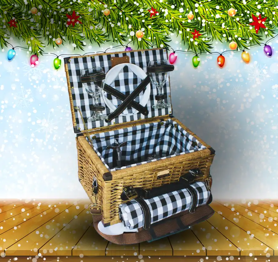 La Cesta Maletín de Mimbre ofrece una opción más clásica para quienes prefieren un estilo tradicional pero con un toque moderno. La textura y color natural del mimbre hacen que cualquier ancheta resalte y luzca especial. Además, la guarnición de detalles artesanales hará que la presentación sea simplemente perfecta para cualquier ocasión, especialmente en Navidad.