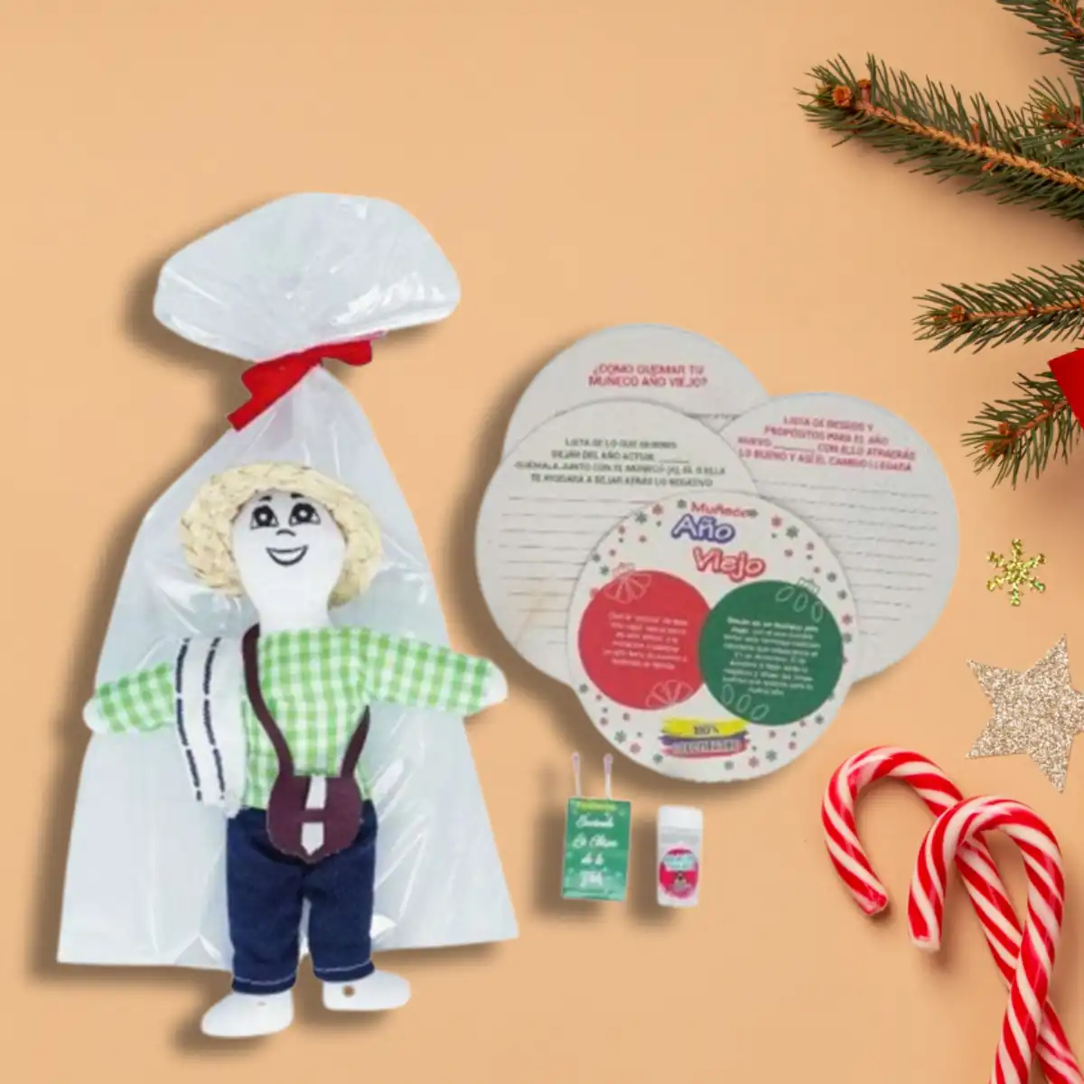 Si bien el Muñeco Año Viejo Pequeño puede parecer un elemento simbólico, es perfecto para quienes buscan una versión más manejable pero igualmente significativa. Ideal para espacios reducidos o celebraciones más íntimas, este muñeco sigue representando la tradición de dejar atrás el pasado con alegría y esperanza para el nuevo año.